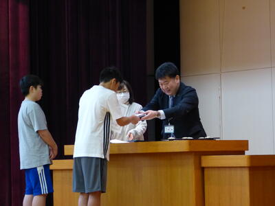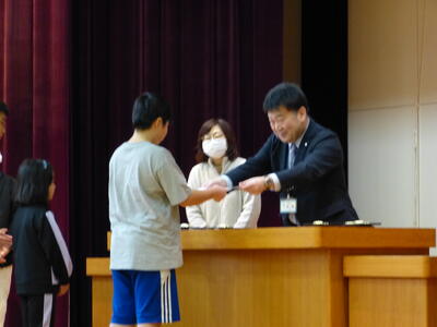 11月7日(金)に行われた「第43回猿払村少年の主張大会」、11月8日(土)~9日(日)に行われた「小中学生書道・絵画展」の表彰式がありました。今年度は、猿払村教育委員会教育長:松浦 隆史氏、猿払村教育委員会社会教育主事:松谷 美桜氏が来校され、受賞した子どもたちにじかに表彰をしていただくことができました。早朝からのご協力、本当にありがとうございました。