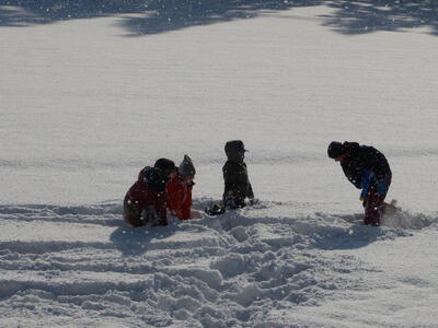 今日は、村のすべての学校が、暴風雪警報による臨時休校でした。