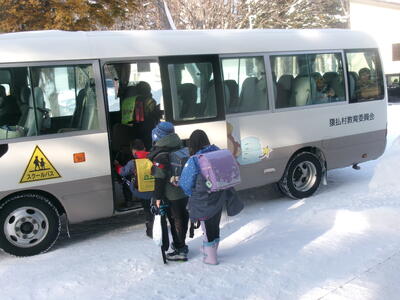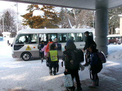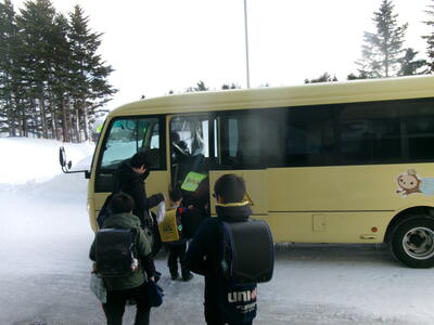 今日は、今年度最終となる3回目の鬼志別小学校との交流がありました。3時間目・4時間目・給食・掃除・昼休み・5時間目と、それぞれの学級の一員として過ごしてきました。(校内での撮影は遠慮させていただいたので、今回はバスの乗降のみの写真です。)