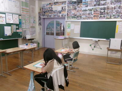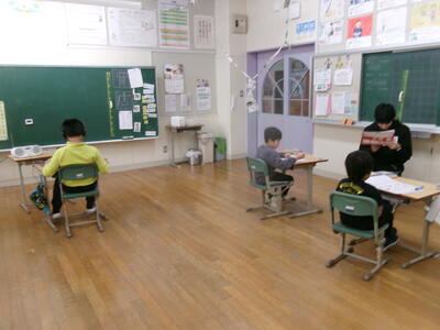 1.2年生学級目標「けっぱれ! ~げんきにあいさつ みんなにやさしい1.2年生~」