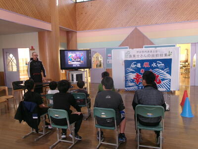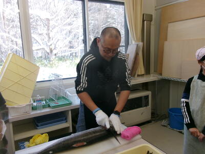 今日の3.4時間目は、宗谷総合振興局水産課・猿払村役場・猿払村漁業協同組合・漁業士の方々が来校され、「漁業士による出前授業」を行いました。漁業士さんとは、地域のリーダーとして活躍する現役の漁師さんであり、漁業に関する地域活動の指導・資源の増大・漁業経営の安定・地域漁業の担い手の育成などについて、幅広く活動されている方々です。そして、子どもたちに「地元で獲れる魚介類の美味しさを知ってもらい、もっと食べてもらいたい!」「漁業に興味を持ってもらい、その魅力を伝えたい!」と いう漁業士さんの思いから生まれたのが、この出前授業です。浅茅野小では「鮭」をテーマに授業を行っていただきました。