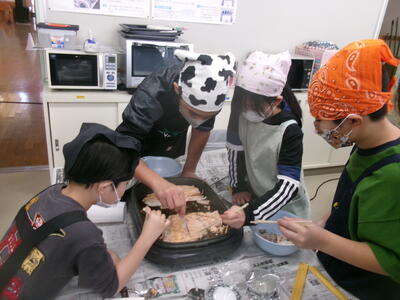 3時間目は、全校で「さけの生態やさけ漁の仕方」について学び、4時間目は、家庭科室で「さけフレークづくり」に挑戦しました。子どもたちにとって、見るもの・聞くこと・やってみることが初めての経験という内容がいっぱいあり、目を輝かせながら励む姿がとても印象的でした。さけフレークづくりでは、焼きながら小骨を取ったり、木べらでほぐすなどの作業も協力して行い、見事に完成させることができました。自分たちでつくり上げたものの味は、格別だったと思います。給食でも食べ、家庭におみやげも持ち帰ることができました。