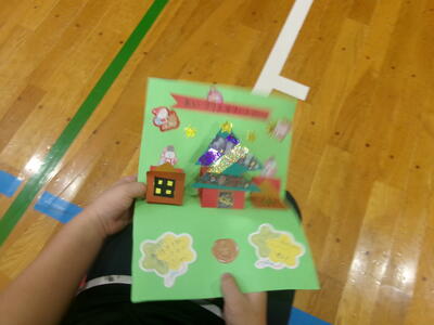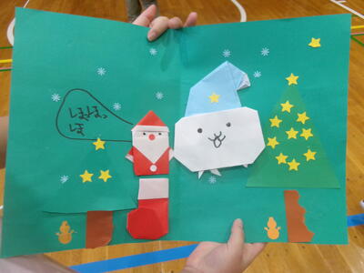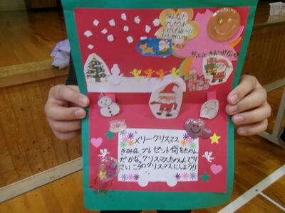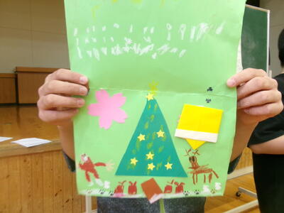 大盛況のあみだくじタイムによって交換相手が決まると、「クリスマスカード交換タイム」へ。みんなこの日のために思考を凝らし、個性あふれるカードを完成させて持ち寄りました。これがまたどの子もすばらしい!みんなでにぎやかに交換タイムを終え、カードを手に記念写真を撮って幕を閉じました。
