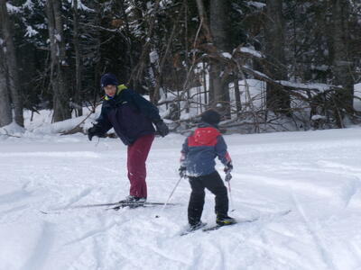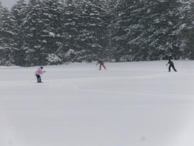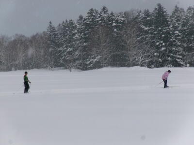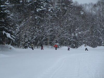 歩くスキー用の板よりも少し細めであり、より競技に適している板と言えるでしょう。高学年の児童たちはスケーティング走法もバッチリ!たいしたものです!