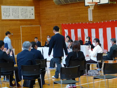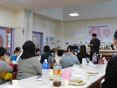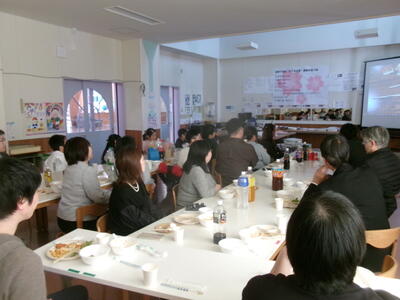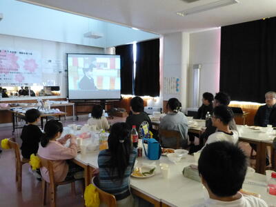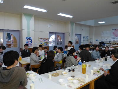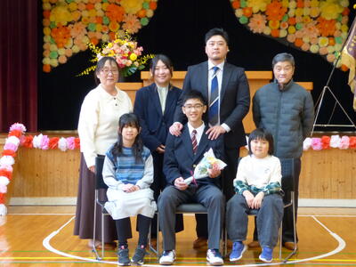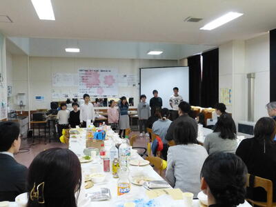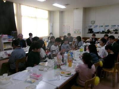 その後は、給食室に場所を移動し、PTA主催による「卒業・進級を祝う会」を行いました。この会の企画・準備・調理にとご尽力くださったお母さん方には感謝の思いに尽きます。バイキングの食事あり、スライドショーあり、ゲームあり、クイズあり、全校8名による決意の言葉あり・・・とにかく楽しく、あたたかく、感動的な、名残惜しい時間になりました。